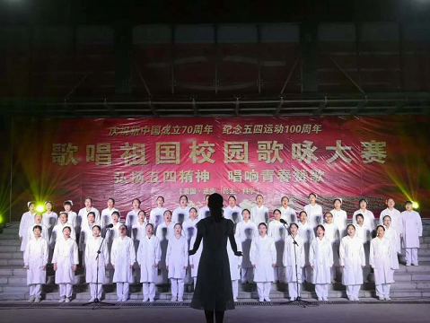 在新中国成立70周年、五四运动100周年来临之际,5月17日晚,yl23411在文昌校区行政楼前隆重举行“弘扬五四精神,唱响青春赞歌”校园歌咏大赛决赛。