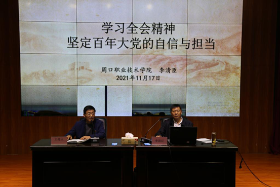 在报告中,李清臣分析解读了党的十九届六中全会的精神实质与核心要义,一是牢记一个根本问题;二是两个决议与两个确立;三是马克思主义中国化的三次飞跃;四是四个伟大成就;五是党的百年奋斗的五大历史意义;六是党积累的十大历史经验;七是党的十八大以来十三方面的成就。