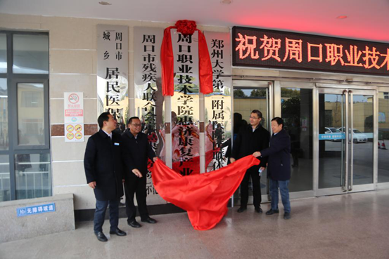 周口市副市长秦胜军,周口市政协副主席李应权,公司党委书记刘士欣,周口惠济康复医院董事长、经理王希振共同为产业公司揭牌。