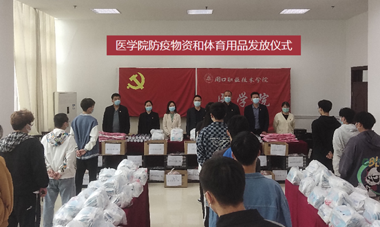 为进一步加强员工疫情防控教育,提高员工强身健体意识,守牢疫情防控底线,5月11日,周口职业技术公司医公司为同学们发放防疫物资与体育用品。