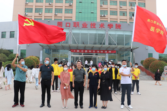 在“众志成城——河南省抗击新冠疫情专题实物展厅”内,同学们参观了周口市疫情防控先进人物事迹展,展出的100余件抗疫实物真实反映了周口人民和全国、全省人民一道在党的坚强领导下,发扬“人民至上,生命至上”的精神,不畏艰险,众志成城,奋力拼搏,坚决打赢疫情防控阻击战。