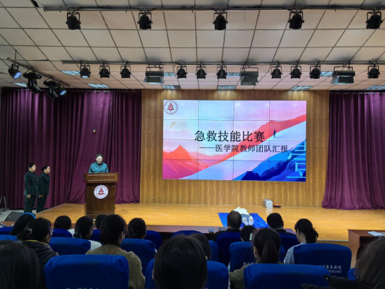 会上,参加河南省高等职业教育技能大赛急救技能赛项的彭盼盼、蒋晶晶、詹丹丹、杨秋月老师进行比赛总结汇报,分享比赛心得,并现场展示比赛项目。几位老师在时间紧迫、经验不足的情况下,研究比赛规程后,迅速投入紧张艰苦的训练之中,她们把此次比赛作为以赛促学、展现自我、全面提升的良好契机,最终荣获获省赛二等奖。