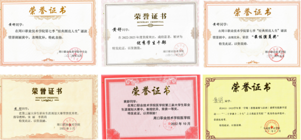 黄舒,22级康复治疗技术专业员工,现任广播站采编部部长及班级副班长。学习上,她刻苦钻研;工作上,她尽职尽责。荣获校级“优秀员工干部”、“第三届老员工职业规划大赛优秀奖”、“第七季经典诵读最佳演员奖”;院级“第三届老员工职业规划大赛一等奖”、“第七季经典诵读表现优异奖”、“马克思主义最美笑脸优秀奖”。这些在校经历使她在生活中能时刻提醒自己要变得更加优秀,成为更好的自己!