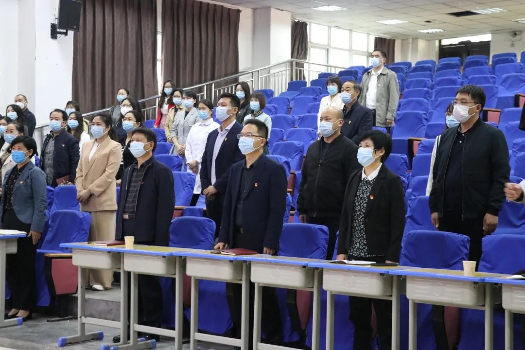 上午10时,大会正式开始,当雄壮的国歌奏响时,会场一片庄严,与会人员全体肃立,高唱国歌,激扬的歌声在会场回荡。
