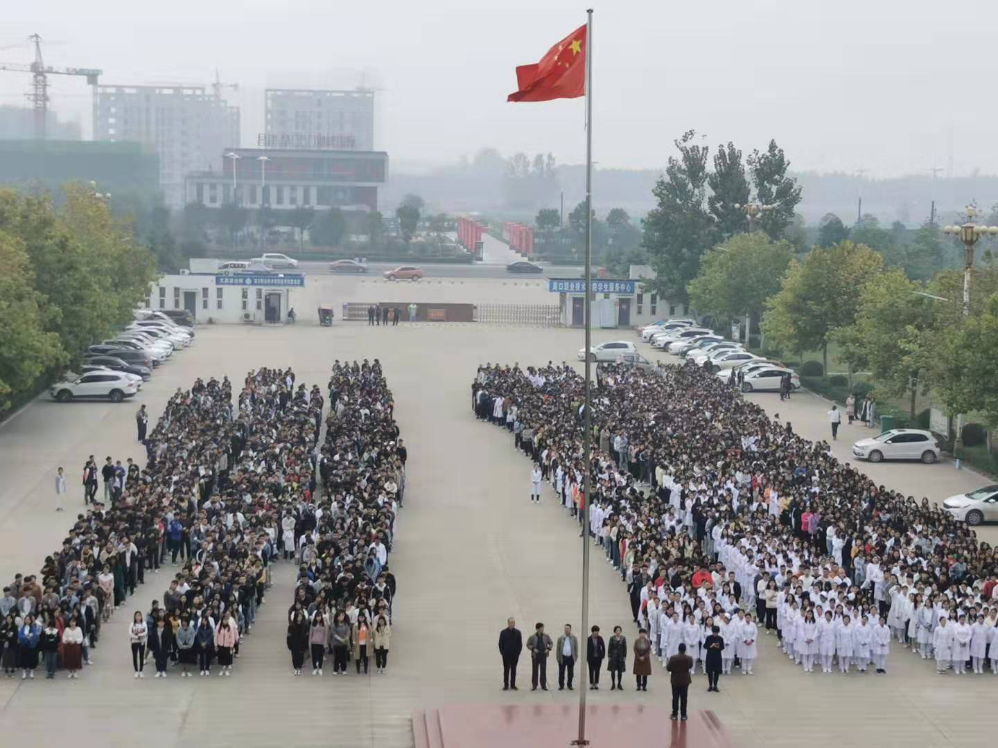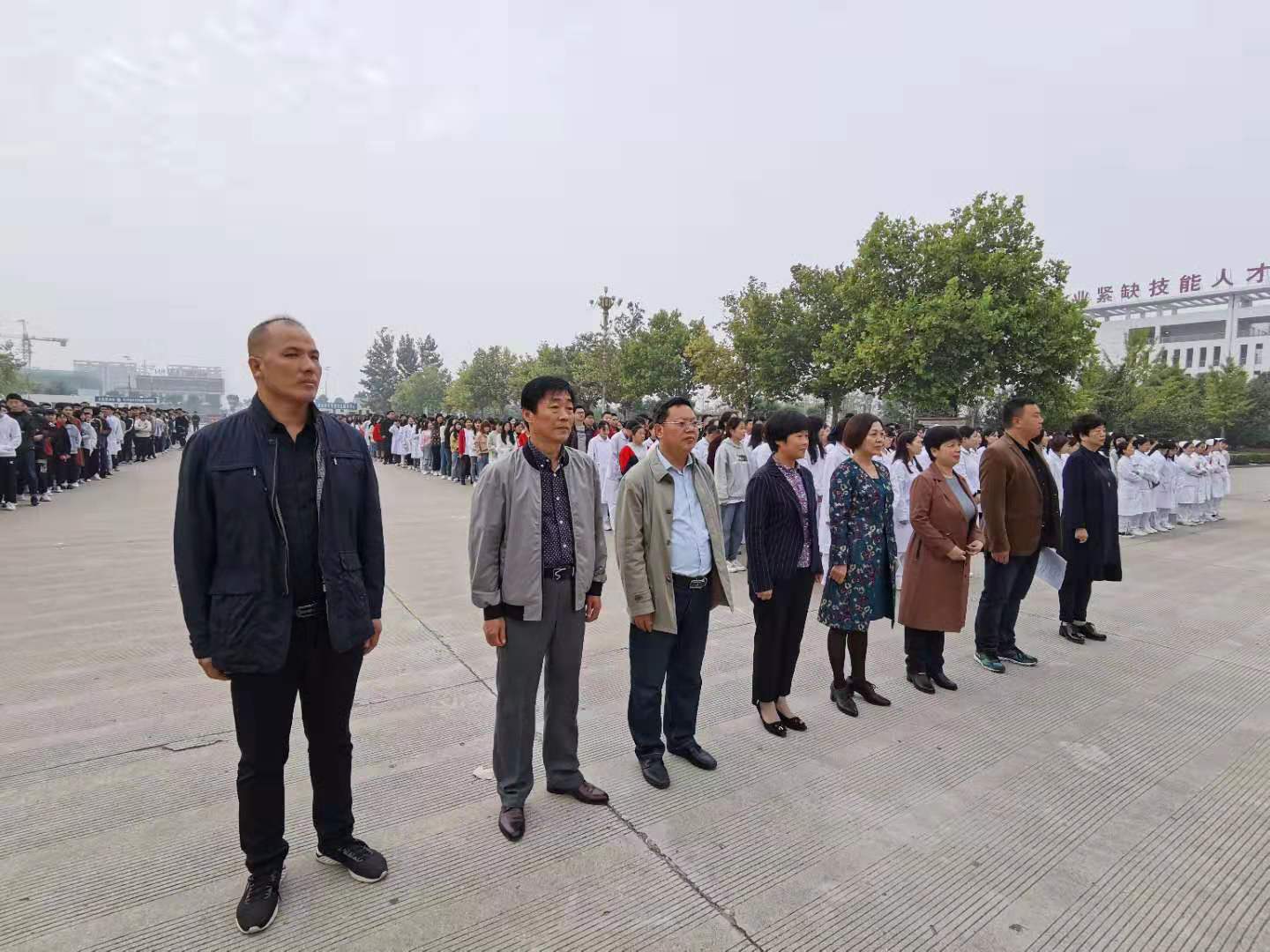 10月21日早晨,文昌校区升旗仪式在行政楼前广场举行,yl23411、护理公司全体班成员、辅导员参加。