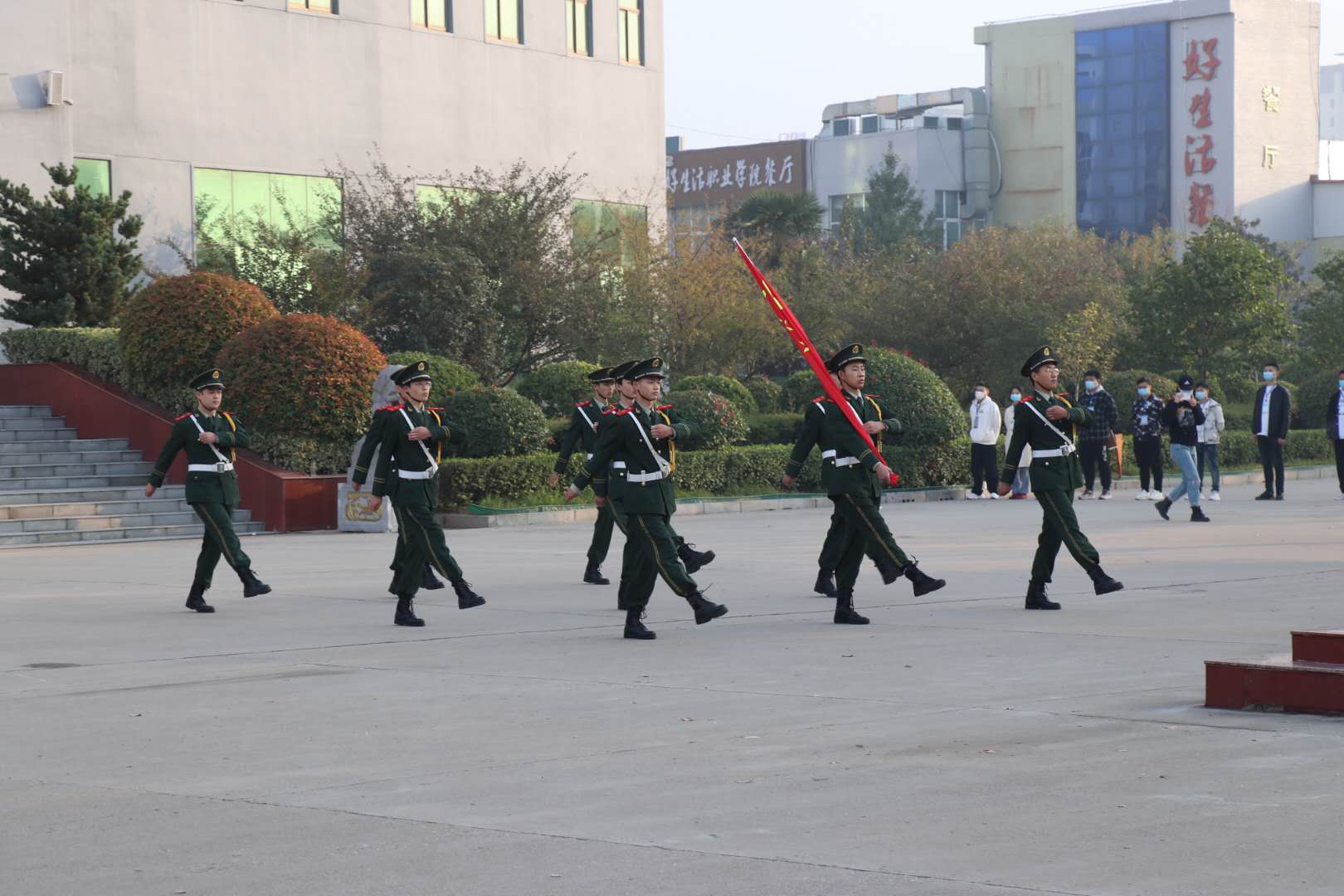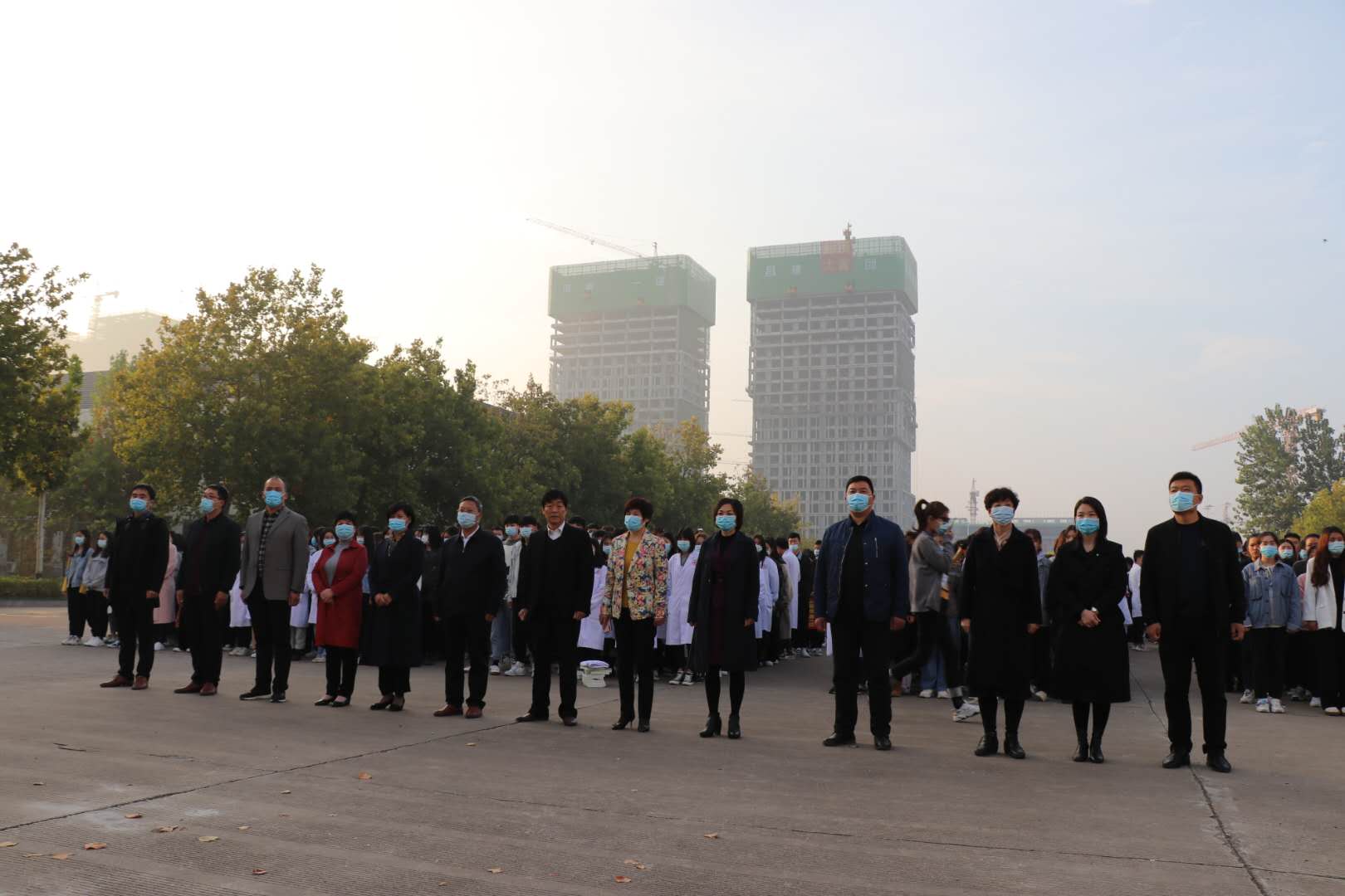 10月19日早晨,文昌校区新学期首次升旗仪式在行政楼前广场举行,yl23411、护理公司全体副科级以上干部及全体辅导员参加。
