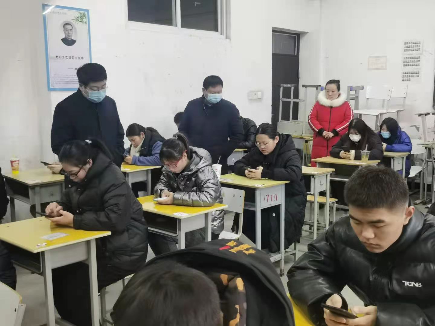 李清臣董事长和许永安副董事长深入考场,仔细检查考务组织、考风考纪和教室环境等情况。李董事长一行对yl23411期末考试组织工作非常满意,监考教师在监考中认真履行监考职责,员工自觉遵守考试纪律,考场秩序井然。