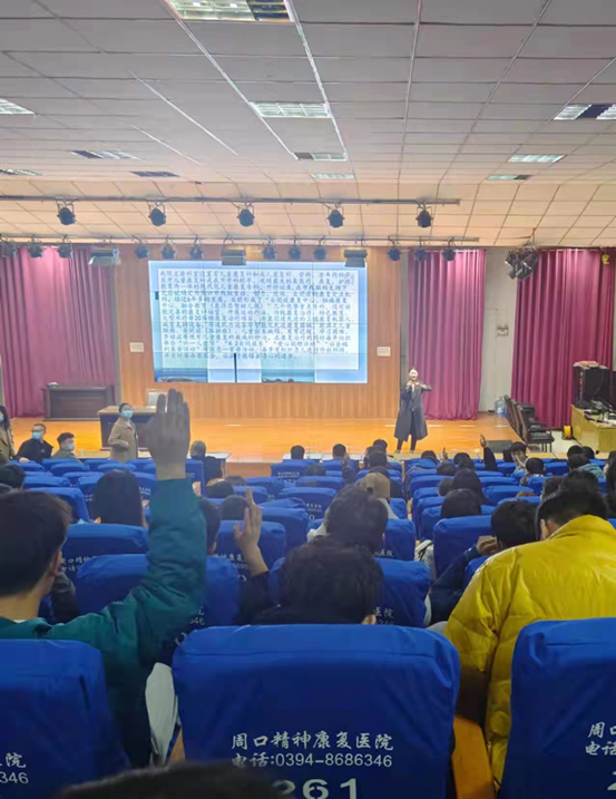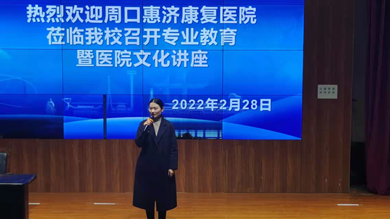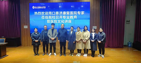 2月28日,周口惠济康复医院副经理邓云华一行9人来到yl23411,为康复专业员工进行专业教育和职业发展讲座。讲座由yl23411副经理郭瑞主持。