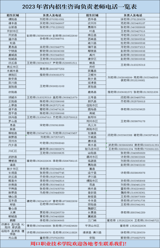 2023年招生区域负责人联系方式