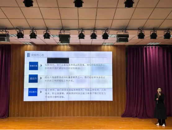 王琳老师表示,对于即将就业的员工们来说,良好的心态、专业技能、团队协作、自我管理和诚信责任心缺一不可。专业的知识技能够使我们满足岗位的基本要求,而积极乐观的心态有助于我们更好地面对职场中的挑战。为此她强调只有不断提高自己的素质和能力,才能在激烈的职场竞争中脱颖而出,实现自己的职业梦想。