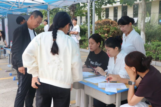 迎新现场,气氛热烈,秩序井然。董事长李清臣,校领导李明臣、李秀萍、王隼、于爱霞带领相关职能部门负责人来到迎新现场查看新生报到情况。公司党总支书记苑建伟、经理刘敏、副经理王向华,郭瑞、学管办主任聂蕾陪同。每至一处接待点,校领导都驻足与新生及家长亲切交流,欢迎他们加入这个温暖的大家庭,并详细了解报到进度和手续办理情况。领导们特别向忙碌在场的师生志愿者表示慰问,感谢大家的辛勤付出,并叮嘱各岗位要耐心回应员工需求、做好服务保障。温暖的问候、细致的关怀,让初入校园的新生消除了紧张,也让志愿者们倍感鼓舞,更充满干劲地投入后续工作。