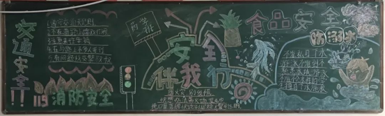 在本次活动中,同学们积极参与,他们把自己对安全的理解生动形象地展现在黑板报中,本次黑板报创作的内容涵盖了交通安全、防火防盗、网络安全、食品卫生安全等多个方面。一幅幅色彩艳丽的黑板报,构成了班级中宣传安全知识的一道亮丽风景。
